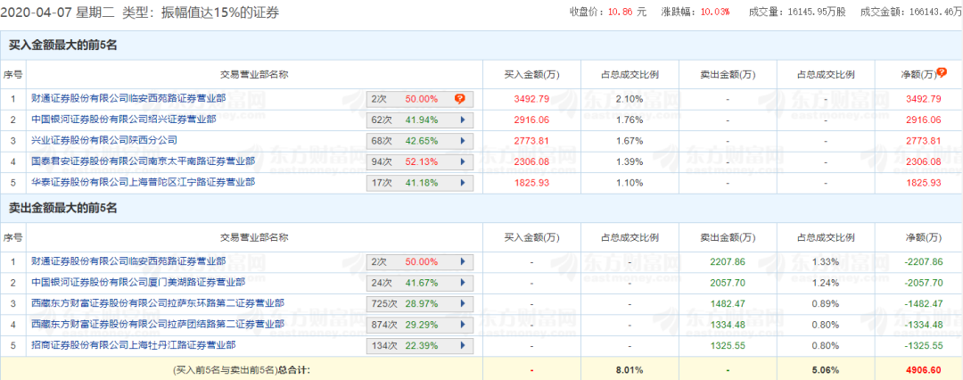 从交易所龙虎榜数据来看,炒作该股的背后资金均为游资,其中包括西藏东方财富拉萨团结路第二证券营业部、财富证券杭州西湖国贸中心营业部、国泰君安证券上海江苏路营业部等知名游资席位,其拉高对倒的迹象较为明显。