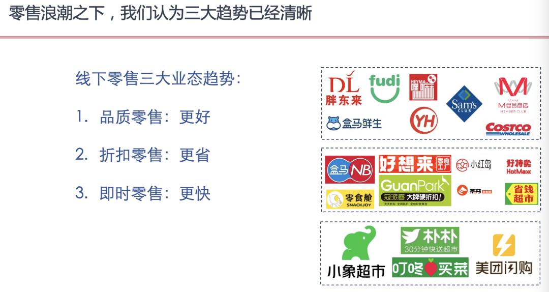当前,零售业有三个趋势同时存在,即品质零售做“更好”,折扣零售做“更省”,即时零售做“更快”。