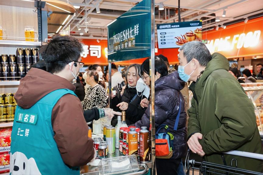 1月30日,京东七鲜超市北京西红门荟聚店、上海浦东世纪汇店双店同开。尽管冬日寒风凛冽,仍未阻挡市民“抢鲜”的热情。两家新店一大早就热闹非凡,果蔬、烘焙、水产、自有品牌等各个区域人气爆棚,勾勒出京沪两地新春消费市场的活力图景。